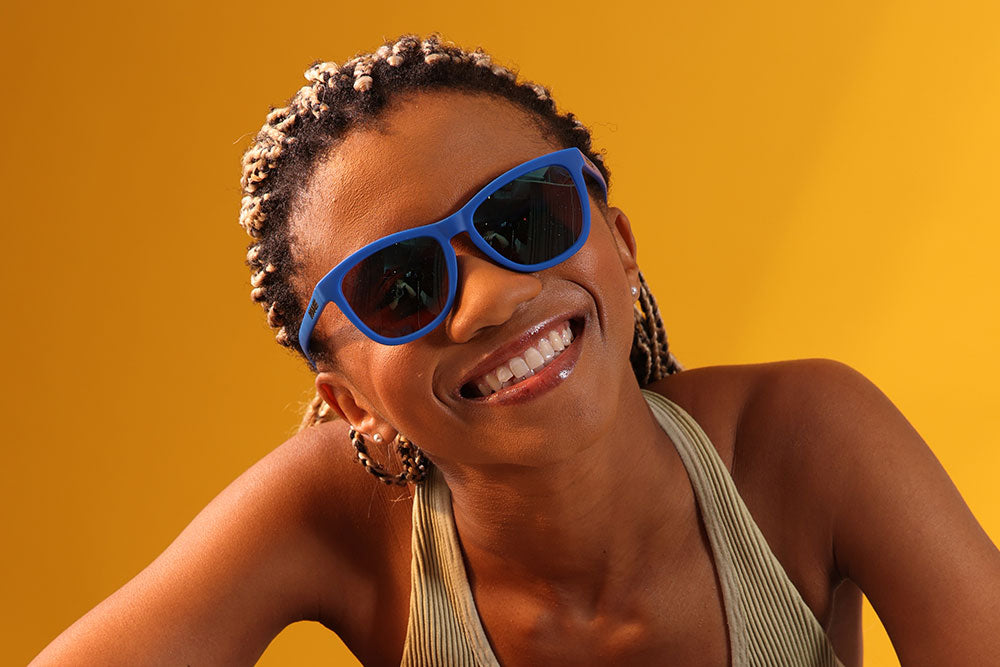 Named after the owner's oldest daughter, this vibrant blue-on-blue kids' sunglass radiates the joyful spirit of a new day, bringing a playful splash of color and adventure to every little explorer. These are suitable for kids and small faces.