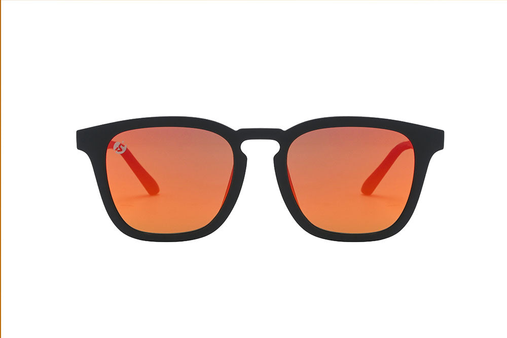 The Falcon Flare sunglasses embody the spirit of the desert's most majestic predator—the falcon. Featuring bold black frames paired with striking orange rainbow lenses, these sunglasses capture the mesmerizing palette of the desert sky, from the warmth of the rising sun to the fiery hues of a sunset. Falcon Flare sunglasses exude fierce style and energy, bringing a powerful, enigmatic edge to your look that commands attention.